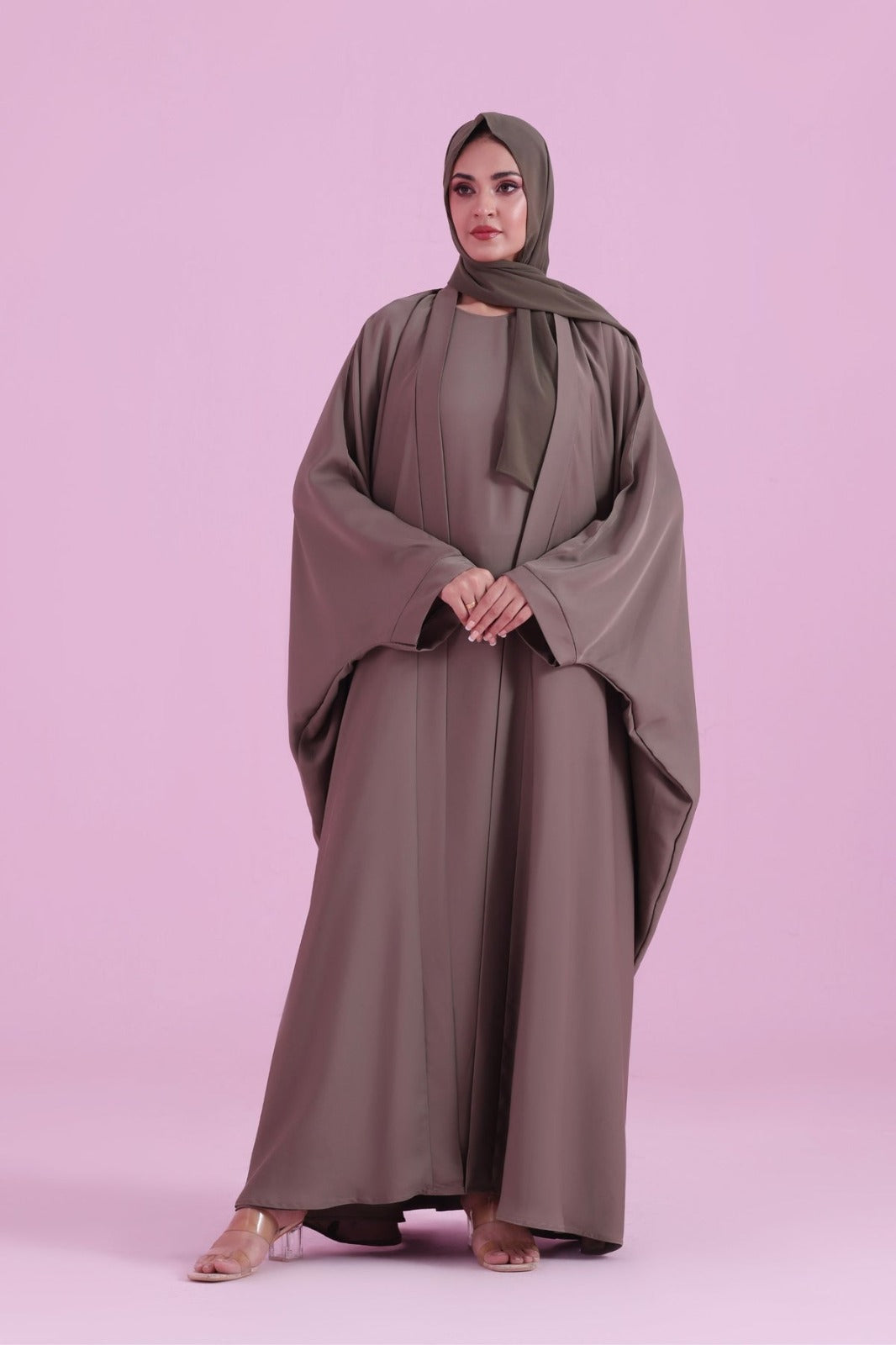 Flowy Farasha Cut Abaya - Olive Brown